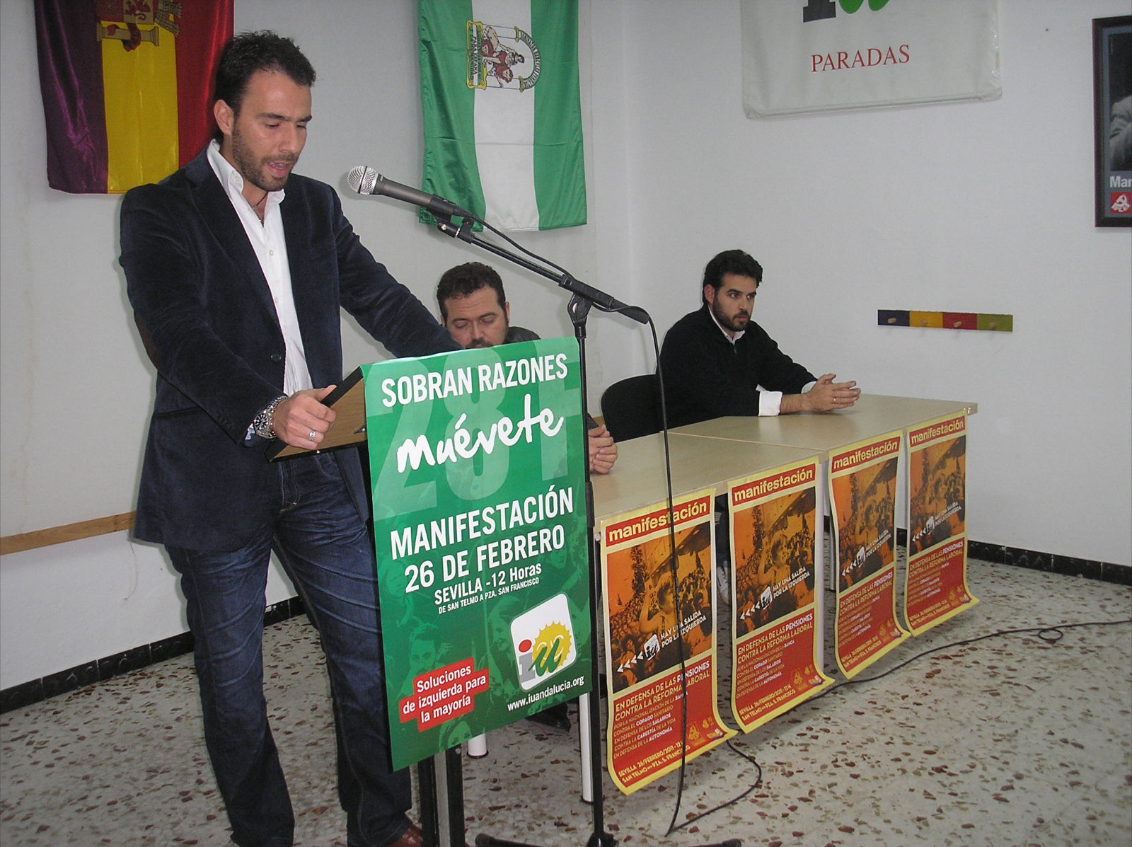 Izquierda Unida y el PCE han convocado una manifestación en contra de la reforma laboral y el ataque al sistema de pensiones, que tendrá lugar próximo día 26 de febrero, en Sevilla a las 12:00. Comenzará en San Telmo hasta la Plaza de San Francisco.