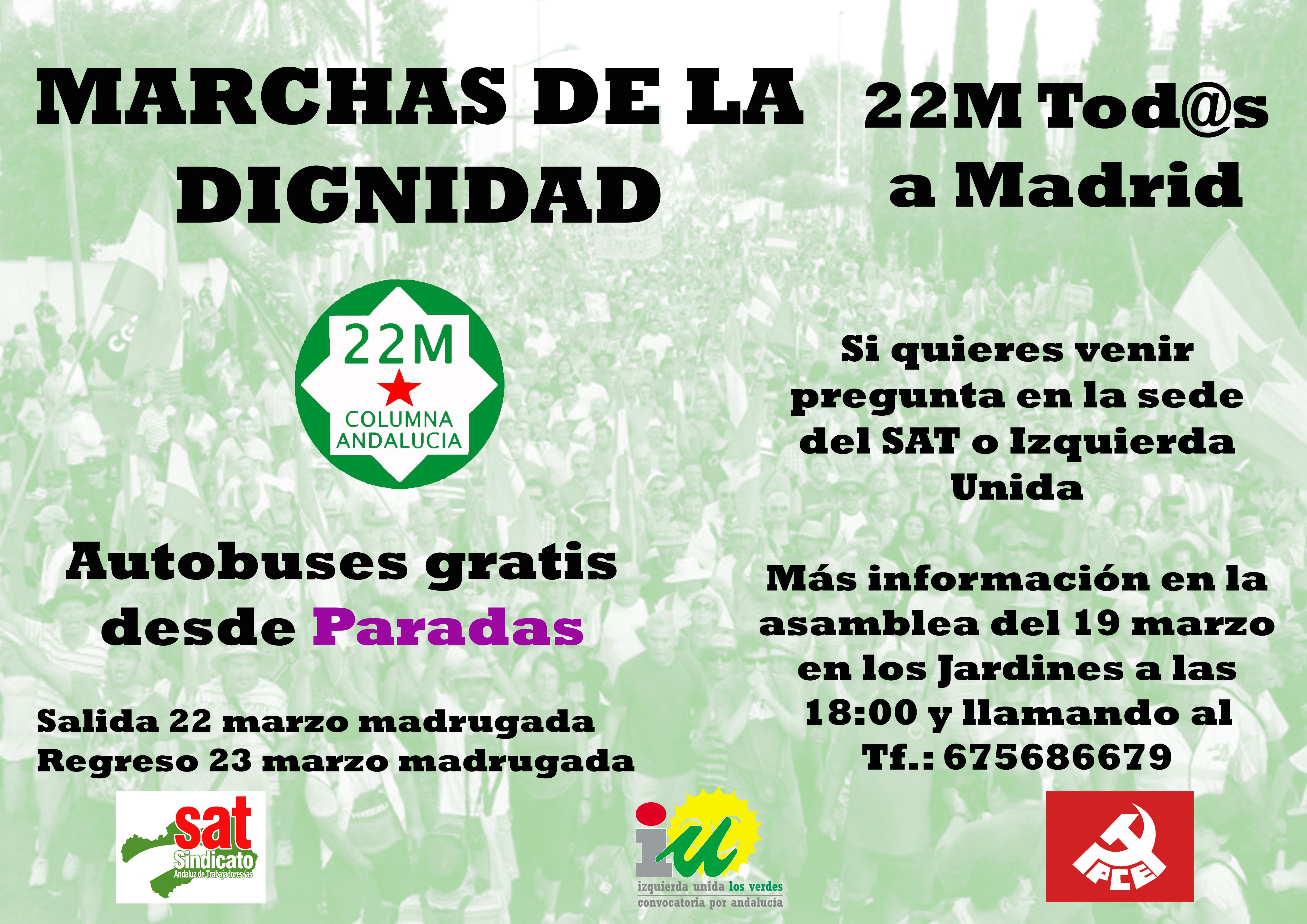 Para avanzar en la construcción de la unidad y del poder del pueblo se están preparando, desde muchos lugares del Estado, unas Marchas de la Dignidad que llegarán a Madrid el 22 de marzo de 2014. Las Marchas, convocadas por diversas organizaciones, tienen por objeto la protesta contra las políticas que están haciendo cargar los efectos de la crisis sobre las clases populares y la mayoría social trabajadora de nuestro país a través de recortes y eliminación de derechos sociales, económicos, políticos y libertades.